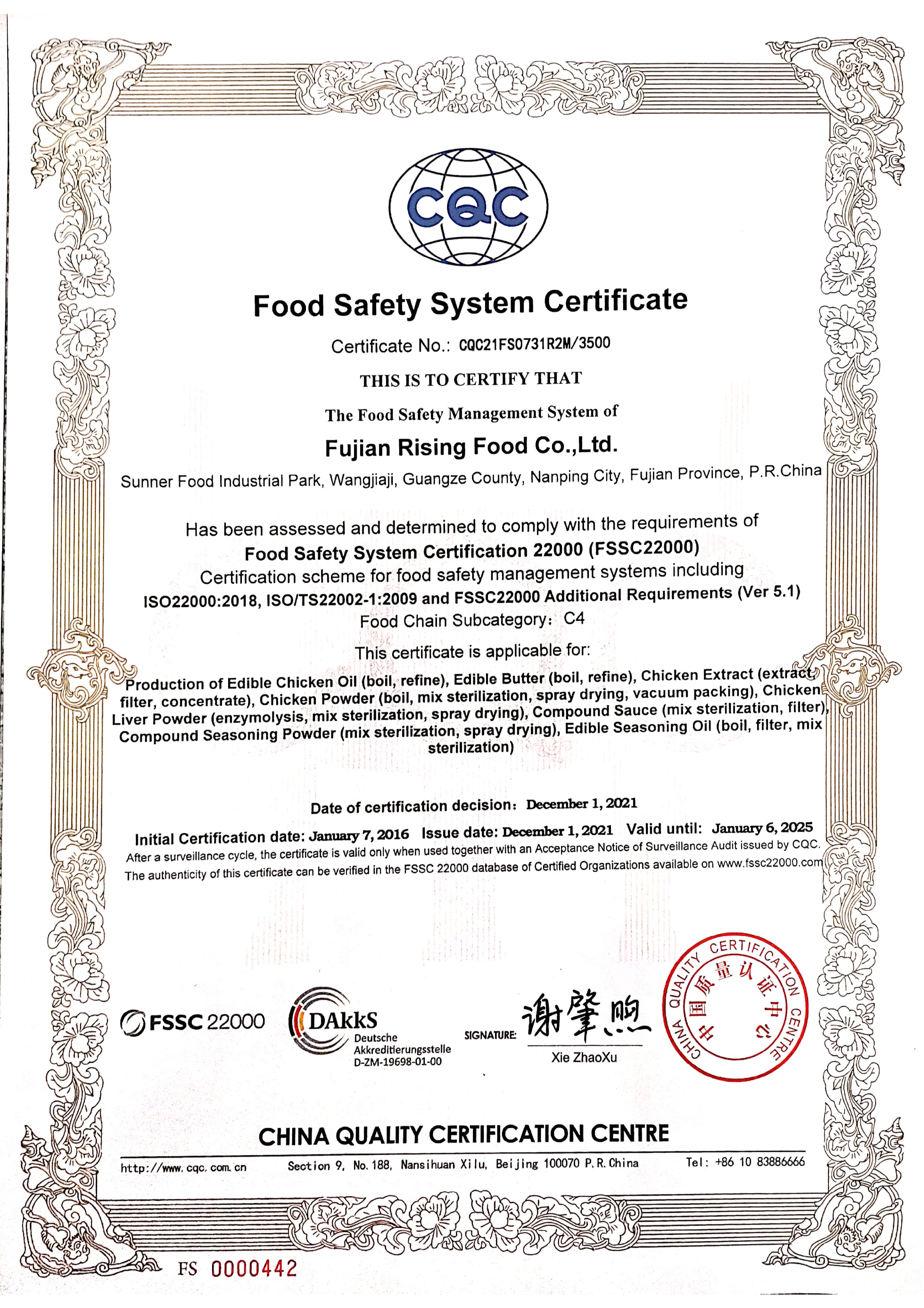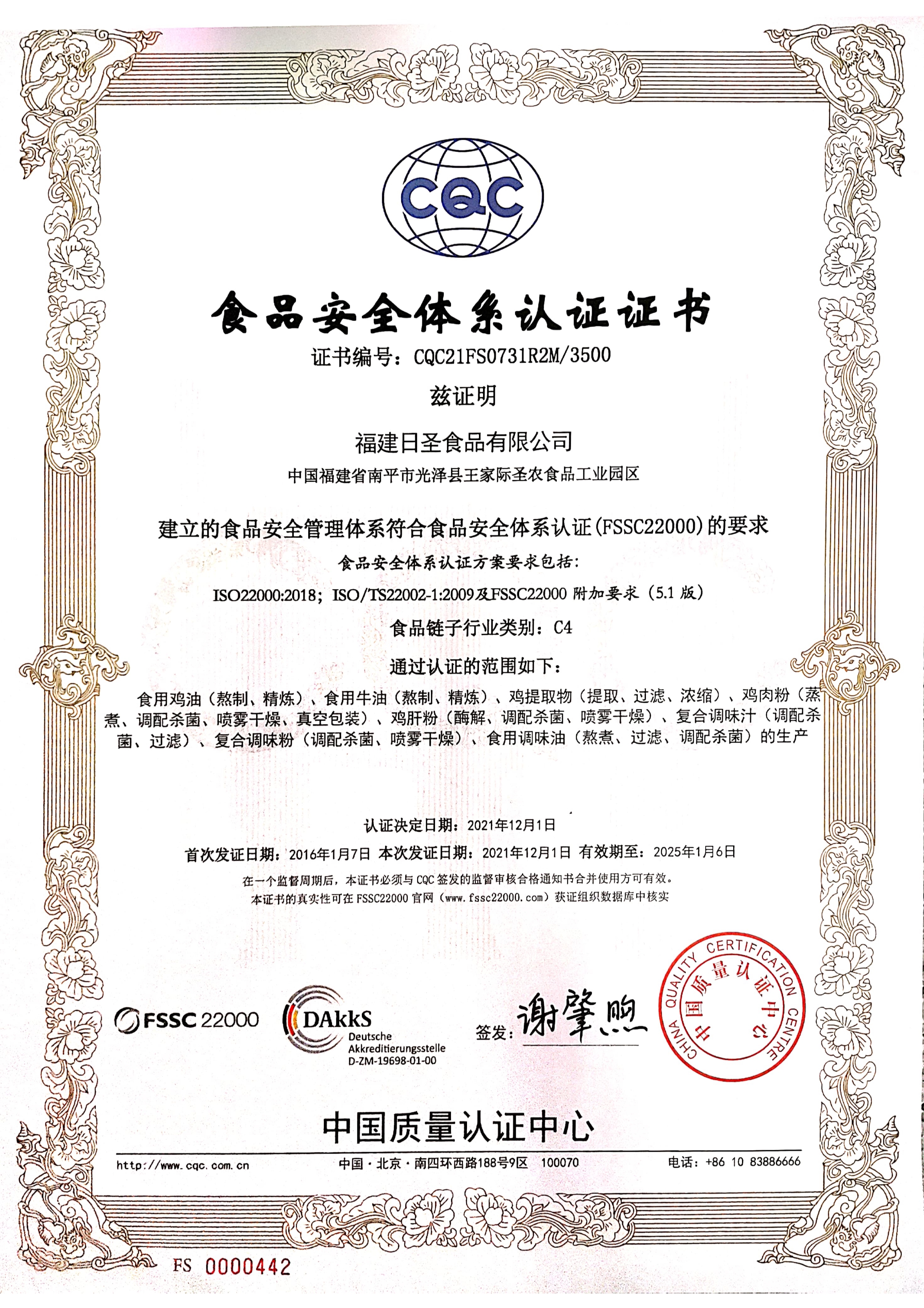 食品安全體系認(rèn)證證書