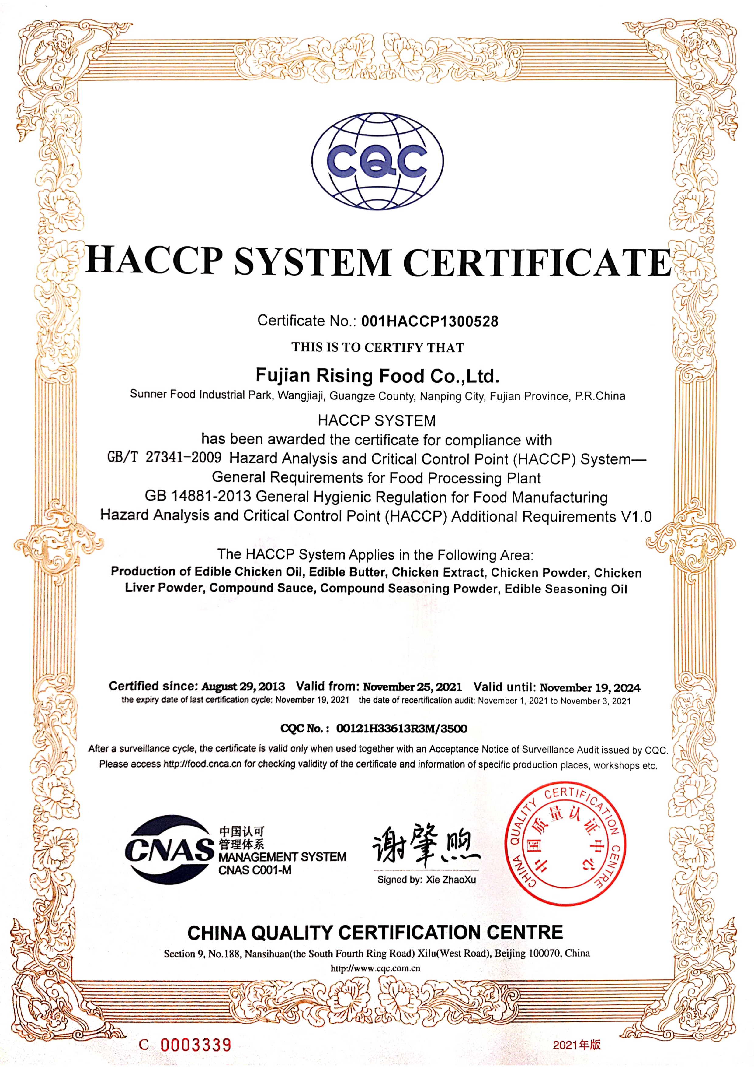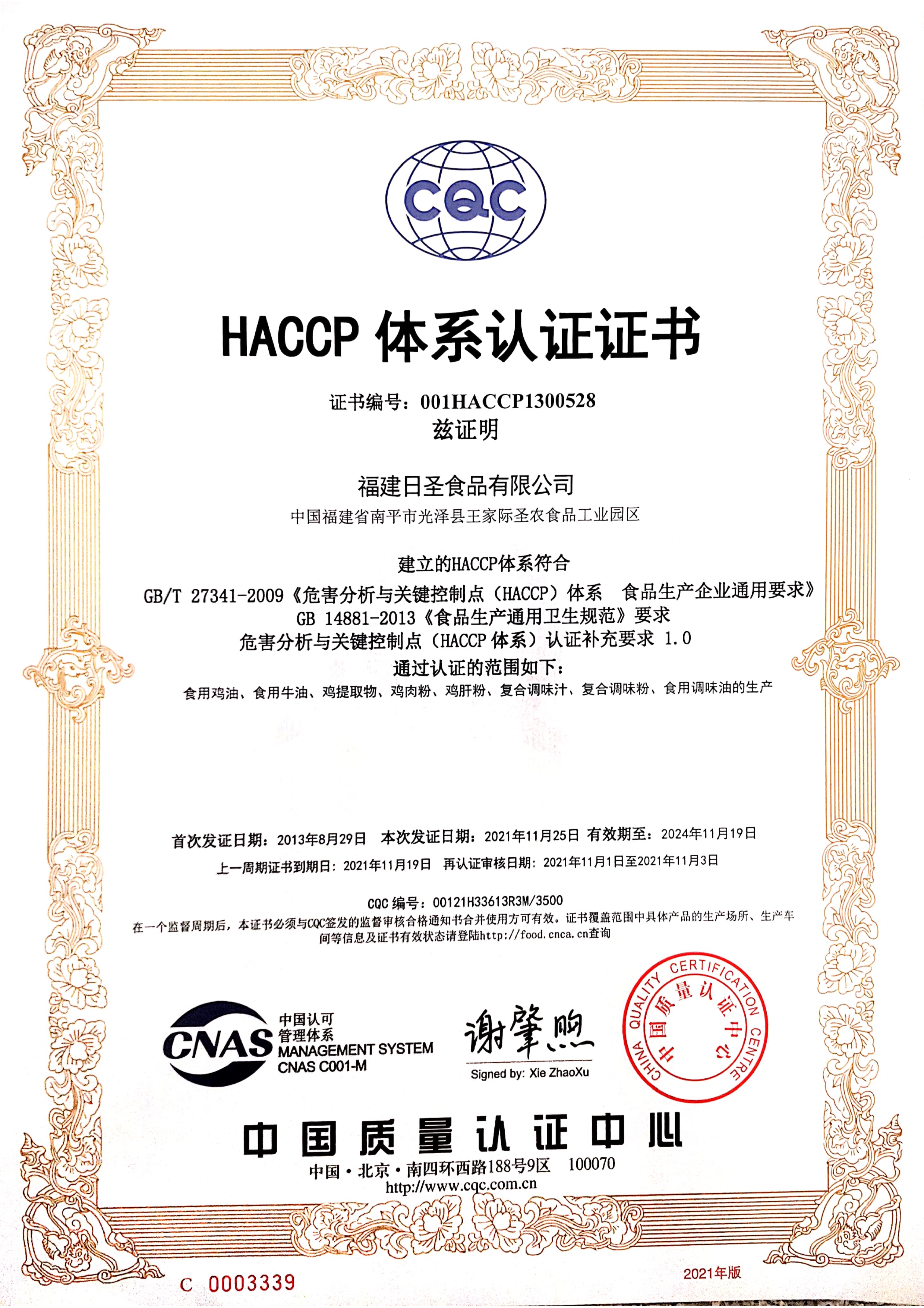 HACCP體系認(rèn)證書